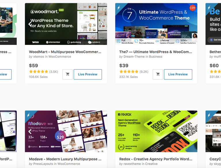 ThemeForest offers premium WordPress themes that work great with Hostinger hosting.